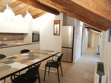 affitto splendido appartamento A PARTIRE DA luglio 2026 in edificio storico terzo piano arredato a nuovo dotato di lavatrice asciugatrice riscaldamento raffrescamento, televisione, wii-fii, ideale x 4 persone ( non fumatori , no residenza) organizzato con due bagni completi, camera matrimoniale, camera due letti, soggiorno e cottura pranzo. tetto in legno mansardato h minima 170cm . ideale x 3/4 PERSONE - studenti o abitazione temporanea x motivi di lavoro