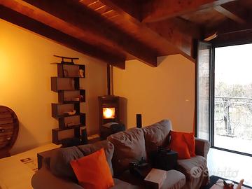 L'appartamento è completo di cucina living completa di fornelli, lavabo, forno, frigorifero, forno a microonde, lavastoviglie, macchina del caffè a cialde, macchina per il sottovuoto ed un ampio tavolo; l'ambiente aperto include anche il salone con un comodo divano, televisore 46 pollici, sistema audio dolby surround, PlayStation ed una caldissima stufa a pellet molto bella; 2 camere da letto di cui una attualmente adibita a palestra/deposito mentre l'altra è completa di letto matrimoniale, 2 comodini, armadio, cassettone e tv; 2 bagni completi, termoarredo, lavatrice ed una doccia multifunzione idromassaggio, sauna, doccino ed erogatore a pioggia.