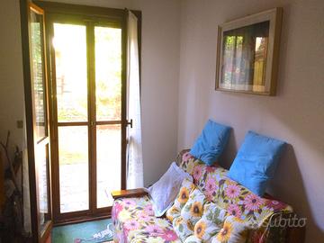 Vendesi appartamento in residence immerso nel verde a 3 km dal centro di Leonessa. Piano terra 45mq ca con ampio giardino esclusivo 120mq ca, arredato, camera matrimoniale, cameretta con letto a castello + terzo letto estraibile, bagno, soggiorno con caminetto e angolo cottura, pavimento in cotto, finestre a doppi vetri, zanzariere, armadio a muro, ripostiglio esterno. Tot. posti letto 5 + 2 su divano letto. Riscaldamento autonomo: elettrico +caminetto. Posizione esterna rialzata, tranquilla e fresca, silenzioso. Parcheggio, area giochi, area grill. Buono stato.