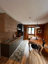 Appartamento ristrutturato a nuovo, posizione strategica. Composto da ampio soggiorno con angolo cottura, camera matrimoniale e cameretta, ampio bagno e ripostiglio. A pochi passi dal centro e a soli 10 minuti a piedi dalle piste da sci. giugno=1000 luglio=2000 agosto=2600 settembre=1000