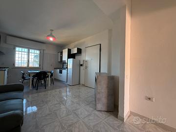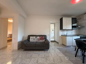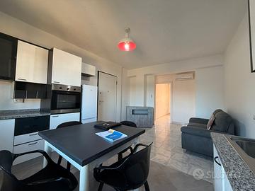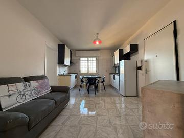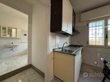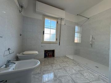 L'ingresso dell'appartamento conduce direttamente al luminoso soggiorno, caratterizzato da ampie finestre che permettono alla luce naturale di illuminare gli ambienti. La zona giorno è arredata in modo funzionale e accogliente, con spazio sufficiente per un comodo divano e una zona pranzo. Adiacente alla zona cucina troviamo il primo bagno, con antibagno, completo di zona lavanderia e ampio box doccia.