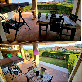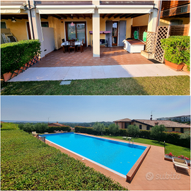 Nuovo ed elegante appartamento trilocale di 75 mq, posto a piano terra, con ampio patio coperto a ridosso del giardino privato con incantevole vista lago. A disposizione dei condòmini vi è una piscina posta in una curata area comune immersa nel verde, accessibile direttamente mediante ingresso indipendente dal proprio giardino privato.