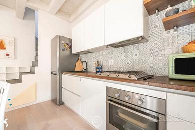 L'immobile è composto da una luminosa camera matrimoniale, una camera singola con letto da una piazza e mezza, due bagni completi, soggiorno con angolo cottura e zona relax. Completa la proprietà una terrazza privata arredata, ideale per momenti di svago all'aperto. Sono presenti inoltre Wi-Fi, aria condizionata e lavatrice.