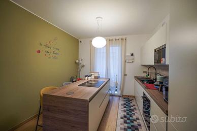 Appartamento al piano primo composto da zona giorno open space servita di un comodo terrazzo coperto e con tenda da sole motorizzata, disimpegno, camera matrimoniale con bagno/lavanderia privato, camera e bagno con doccia.