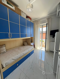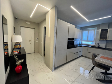 L'immobile rappresenta un'opportunita unica per coloro che cercano un appartamento pronto all'uso in una delle zone piu strategiche di Roma. Situato nel quartiere di Battistini - Primavalle, questo trilocale di circa 77 metri quadrati, al secondo piano di un condominio senza ascensore costruito negli anni '60, si distingue per il suo stato recente di ristrutturazione e per le rifiniture di alta qualita. Completamente arredato in modo moderno e funzionale, l'appartamento gode di doppia esposizione sud-ovest, garantendo luce naturale diffusa tutto il giorno, ideale per vivere con comfort e benessere. La zona giorno, spaziosa e accogliente, e composta da una cucina open space Stosa Infinity, soggiorno con divano letto Dondi, parete attrezzata e impianto surround Yamaha. La zona notte include due camere, una con armadio a ponte e doppio letto singolo estraibile, l'altra con armadiatura e vano tv, oltre a un bagno spazioso con vasca e parete cristallo, ampio spazio lavanderia e infissi nuovi in alluminio a taglio termico con doppi vetri e zanzariere. La proprietà dispone di un ampio balcone con tettoia e tende da sole, perfetto per momenti di relax all'aperto. Gli impianti di riscaldamento autonomo con caldaia Unical a condensazione e condizionatori wifi garantiscono efficienza energetica di classe D. La posizione strategica permette di raggiungere facilmente il centro storico, il G.R.A e le principali linee metro a soli 700 metri dalla fermata Battistini, oltre a negozi, scuole e servizi di prima necessità. La zona intorno all'immobile ospita supermercati come Lidl, Conad e Todis, scuole come IIS Einstein e Virginia Bracelli, parchi e aree verdi come Parco Benedetta Ciaccia ed Eden Park, oltre a fermate autobus e fermate metro, che rendono questa soluzione ideale per famiglie, professionisti e coloro che desiderano vivere in una zona tranquilla ma ben collegata.