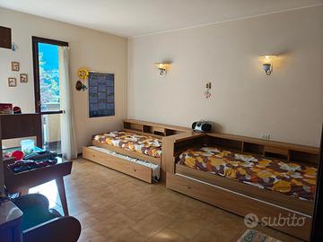 La zona notte è composta da due camere indipendenti, entrambe arredate su misura con mobili in legno di qualità: