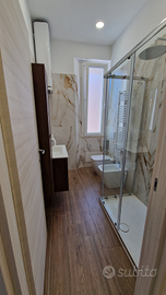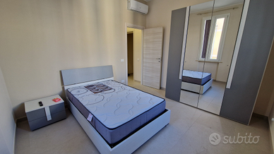 Appartamento appena ristrutturato arredato con cura ,cucina completa di elettrodomestici lavastoviglie e piano induzione TV e divano, piccolo angolo lavatoio con lavatrice e asciugatrice, prima camera con letto matrimoniale armadio comò e TV ,ripostiglio indipendente , bagno con doccia scaldacqua e scalda salviette elettrico ,seconda camera con letto 1 piazza e mezza armadio e TV,tutte le camere e la cucina sono dotate di condionatori caldo freddo e infissi in pvc con taglio termico, zona strategica per chi lavora al centro per spostarsi a piedi