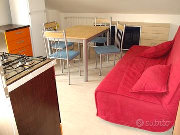 68 mq , lavatrice , lavastoviglie , al momento è allestito con camera da letto e salotto oltre che cucina ma si può organizzare secondo esigenza , ipotesi due camere da letto per eventuale squadra di lavoro , luminoso ed arioso