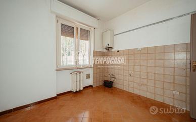 Ingresso in corridoio che porta a destra verso il bagno dotato di doccia e a sinistra verso la luminosa cucina abitabile.