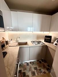 L'appartamento viene ceduto arredato di soggiorno, divano e cucina su misura completa di tutti gli elettrodomestici: