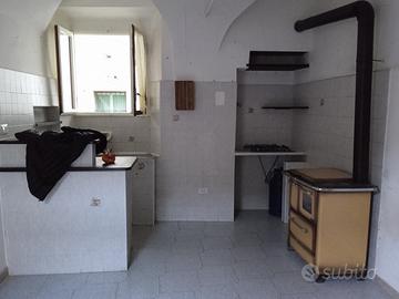 Ha soggiorno con angolo cottura, due camere matrimoniali, bagno, cortile condiviso, e doppia cantina.
