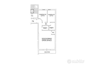 L'immobile è composto da ingresso, soggiorno open space, lavanderia, balcone, due camere da letto e doppio bagno.