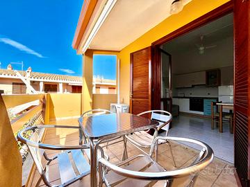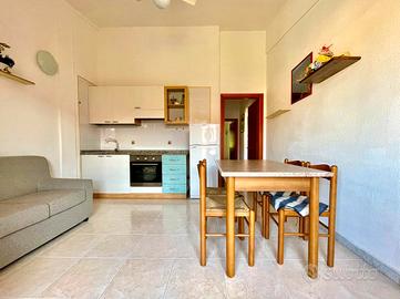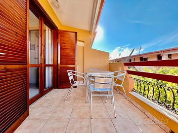 VILLASIMIUS - In via Tasso, in zona residenziale pianeggiante e vicina ai servizi, all'interno di uno stabile ben costruito e ottimamente curato, trivano capo schiera al piano primo con tripla esposizione. Attraverso una comoda scala di proprietà esclusiva, si raggiunge la veranda frontale, utile come spazio esterno da utilizzare per piacevoli momenti di convivialità. Con affaccio sull'esterno, trova spazio un soggiorno-pranzo di forma regolare dotato di parete cottura, tavolo da pranzo e divano e collegato attraverso un corridoio ai restanti ambienti della casa. Adiacente alla cucina trova spazio il bagno finestrato con doccia, seguito dalla prima camera da letto di dimensioni sufficienti ad accogliere un letto matrimoniale. La seconda camera da letto, di ampiezza più generosa, vanta anche un balcone di pertinenza esclusiva. A completare la proprietà, nell'interrato, un box auto chiuso compreso. L'immobile si presenta in ottime condizioni, è completamente climatizzato, e viene venduto arredato. Si consiglia la soluzione a chi è alla ricerca di una residenza estiva o di un investimento dalle ottime rendite e con costi di gestione bassi. Costi condominiali preventivati: 300 euro all'anno.