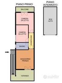 Trilocale capo schiera con veranda e box auto