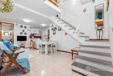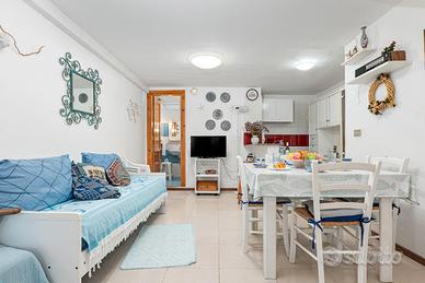 Internamente l'abitazione si compone di soggiorno con angolo cottura e balcone che si affaccia su Via Del Tirreno. A completare il piano d'ingresso troviamo una camera comoda con letto matrimoniale ed un bagno completo.