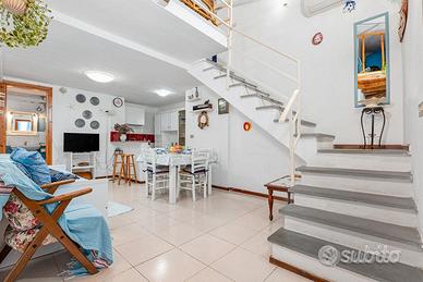 Internamente l'abitazione si compone di soggiorno con angolo cottura e balcone che si affaccia su Via Del Tirreno. A completare il piano d'ingresso troviamo una camera comoda con letto matrimoniale ed un bagno completo.