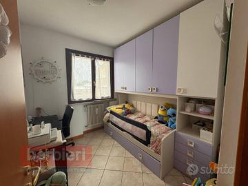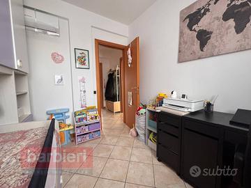 L'immobile, posto al primo piano, è composto da un luminoso soggiorno con balcone, angolo cottura, una camera matrimoniale con balcone, una cameretta singola e bagno con box doccia.