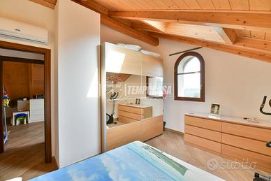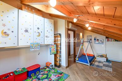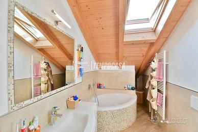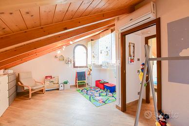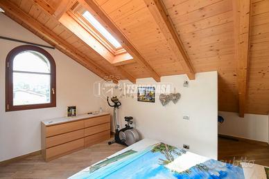 Salendo le scale si accede alla zona notte, mansardata ma ariosa e confortevole, dove troviamo DUE CAMERE da letto luminose, entrambe DOTATE DI FINESTRA E LUCERNARIO, che garantiscono un'ottima ventilazione e una luce naturale costante durante tutto l'arco della giornata. Completa il piano un secondo bagno, anch'esso con LUCERNARIO AUTOMATICO, perfettamente integrato con lo stile moderno della casa.