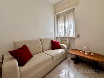 L'appartamento, posto al primo piano di un condominio dotato di ascensore, si apre su un accogliente ingresso che conduce all'ampio soggiorno, un ambiente spazioso e ben illuminato, con cucinotto separato. Da entrambi gli ambienti della zona giorno è possibile accedere, tramite porte finestre, all'ampio terrazzo a livello: uno spazio vivibile perfetto per momenti di relax all'aperto e per godersi il clima mediterraneo.