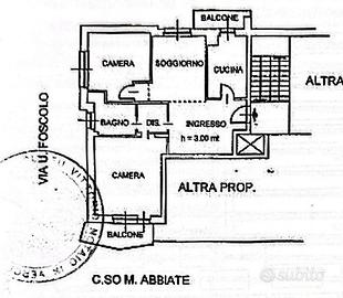 Ingresso ampio, cucina semi abitabile con accesso al primo balcone, sala da pranzo, soggiorno, camera singola, camera matrimoniale con accesso al secondo balcone e bagno finestrato con angolo doccia.