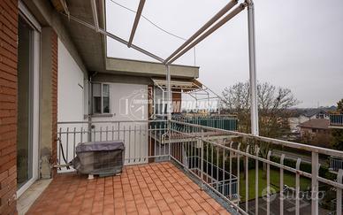 In zona Roncina, comoda a tutte le principali vie di comunicazione e ai servizi, tra cui i maggiori supermercati della città, ma allo stesso tempo in posizione appartata e silenziosa, proponiamo in vendita un appartamento inserito in un curato contesto residenziale composto da due palazzine con giardino e cortile recintato, realizzate in mattone faccia vista. L'immobile è un ampio trilocale posto al quarto e ultimo piano, completamente ristrutturato nel 2022, con interventi studiati per rendere gli spazi moderni, giovanili e funzionali. L'ingresso si apre su una zona giorno ampia e molto luminosa, con sala e cucina a vista elegantemente separata da una splendida penisola, vero elemento centrale dell'ambiente. La zona notte comprende una prima camera attualmente adibita a studio, un bagno principale con doccia in cristallo e sanitari di design, dotato di porta finestra con accesso al balcone, e una camera padronale con bagno en suite finestrato, che garantisce comfort e privacy. Il vero valore aggiunto dell'abitazione è il terrazzo di circa 13 mq, di forma quadrata e regolare, accessibile direttamente dalla sala, ideale per momenti di relax e convivialità, con vista aperta sulla campagna reggiana. L'appartamento è dotato di infissi in PVC, tapparelle in alluminio coibentato e impianto di aria condizionata con pompa di calore. Completano la proprietà una cantina e un garage al piano interrato, oltre a posti auto condominiali esterni. Soluzione ideale per chi cerca un ultimo piano ristrutturato, con spazi esterni vivibili, in una zona strategica ma riservata, pronta da abitare.