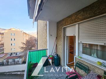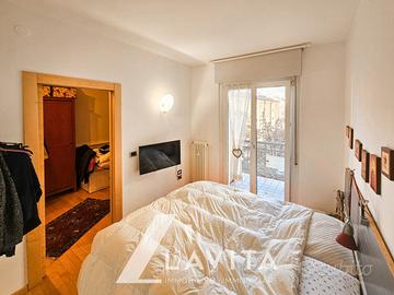L'appartamento è composto da un ampio soggiorno con zona cucina e accesso diretto al balcone, una camera singola collegata a una camera matrimoniale, anch'essa con accesso al terrazzino, un bagno finestrato con vasca e doccia e un ripostiglio.