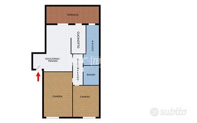 - Ingresso su soggiorno-pranzo di 22,5 MQ con accesso diretto alla terrazza di 14,94 MQ
