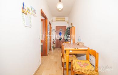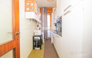 Ingresso su corridoio, cucinotto con balcone, sala con sfogo su balcone, due camere da letto matrimoniali ed un bagno; la soluzione si presenta in condizioni abitabili anni '70.