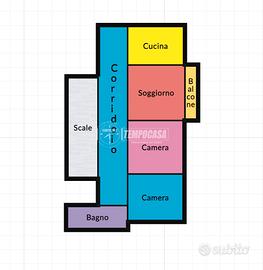 Ingresso, cucina abitabile, soggiorno, due camere da letto e un bagno finestrato.