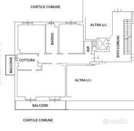 L'appartamento posto al sesto piano è così disposto: l'ingresso si apre su un comodo corridoio che collega tutti gli ambienti della casa. Subito troviamo un pratico ripostiglio, seguito dalla prima camera e da un bagno finestrato dotato di box doccia. Proseguendo si accede alla camera padronale, ampia e luminosa.