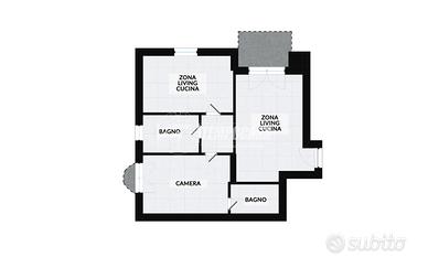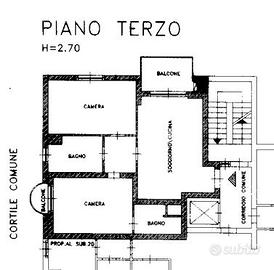 L'appartamento posto al terzo piano in un contesto dotato di ascensore è così disposto: ingresso su luminosa zona giorno con cucina a vista, dalla quale si accede sul terrazzino esposto ad Est, dove poter trascorrere giornate estive in compagnia di amici e parenti, proseguendo con il corridoio si giunge alla zona notte dove si ha l'ampia camera padronale, il bagno finestrato con vasca e la seconda comoda camera da letto accessoriata di secondo bagno e balcone.