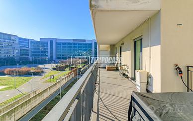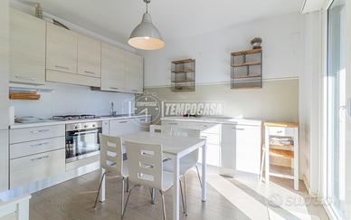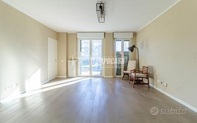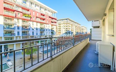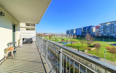 Composto da ingresso nel soggiorno con terrazzo, cucina abitabile collegata allo stesso terrazzo con vista parco, disimpegno, bagno finestrato, secondo disimpegno che conduce alla zona notte composta da due camere da letto ed un secondo bagno, tutto con accesso ad un secondo comodo terrazzo.
