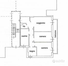 L'appartamento, subito abitabile, si compone di: ingresso, ampio soggiorno con accesso al balcone, cucina abitabile separata, due camere da letto (matrimoniale con parquet),bagno finestrato con doccia e ripostiglio.