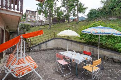 L'ingresso è indipendente e ci accoglie un meraviglioso spazio esterno, unico nel suo genere, che unisce il comfort di un terrazzo alla praticità di un giardino pavimentato. Questo ambiente permette di vivere al meglio la proprietà, nel relax e nella quiete che solo un paese come Costa Serina può offrire.