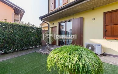 - Spazi esterni: l'ingresso indipendente conduce a una prima porzione di giardino parzialmente piastrellata ed è inoltre presente una seconda porzione di giardino accessibile sempre dalla zona giorno.