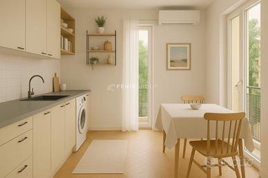 Fenixgroup di Via Bergamo 11 propone in vendita luminoso trilocale di 90 mq ca situato al primo piano servito da ascensore, caratterizzato da una doppia esposizione parallela che garantisce ariosità e luce naturale durante tutto il giorno.--- LE IMMAGINI SONO DEI RENDERING, NON RAPPRESENTANO LE CONDIZIONI REALI DELL'IMMOBILE ---L'ingresso si apre su un ampio soggiorno con parquet e grandi finestre, ideale come zona living e relax. La cucina semiabitabile, separata e funzionale, gode di accesso diretto al balcone. La zona notte comprende una camera matrimoniale padronale con cabina armadio e secondo balcone privato, oltre a una cameretta perfetta per figli, ospiti o come studio.Completano la soluzione un bagno finestrato di generose dimensioni e una cantina di pertinenza, utile come spazio extra per deposito o attrezzature. L'appartamento rappresenta la scelta ideale per chi cerca metrature comode, spazi ben distribuiti e comfort abitativo in un contesto ben servito.Questa descrizione ha valore puramente indicativo e non costituisce elemento contrattuale.