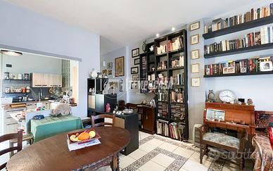 L'ingresso si apre sull'ampia zona giorno bi esposta, con cucina a vista, da cui si accede ai due balconi.