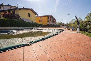 Tempocasa Montichiari propone in vendita all'interno di un residence con piscina dei primi anni 2000 dotato di piscina, un raffinato trilocale al piano terra, completamente ristrutturato e pronto da vivere. L'ingresso si apre su un luminoso open space con cucina a vista, ambiente accogliente e ben distribuito. Sulla sinistra è presente un pratico sottoscala, ideale come spazio contenitivo. Proseguendo, si accede alla zona notte composta da una spaziosa camera matrimoniale, un bagno finestrato con doccia e una seconda camera matrimoniale con bagno privato, anch'esso finestrato e completo di doccia. L'immobile è dotato di comfort moderni e finiture di qualità: sistema di allarme, aria condizionata con pompa di calore, zanzariere, tenda elettrica sul patio, doccia solare e vasca idromassaggio, per un'esperienza abitativa all'insegna del relax. Completano la proprietà un curato giardino privato su due lati, ideale per momenti all'aperto, un terrazzo sul retro e un ampio garage doppio con basculante elettrica. Soluzione ideale per chi cerca comfort, privacy e qualità in un contesto residenziale tranquillo e ben servito. Per fissare un sopralluogo contattare: Tempocasa Montichiari - Via F. Cavallotti 5A (BS) - 25018 - tel. - *DEVI FARE MUTUO? TI AIUTIAMO NOI: Le visite saranno organizzate successivamente ad un appuntamento puramente informativo, senza alcun impegno, presso i nostri uffici con il nostro consulente finanziario esperto in mediazione creditizia, il quale vi fornirà tutte le informazioni relative ad un potenziale mutuo. *Le informazioni e le caratteristiche riportate nel presente annuncio non costituiscono elemento contrattuale. *HAI UN IMMOBILE DI TUA PROPRIETA' E DEVI VENDERLO? NOI POSSIAMO AIUTARTI. CHIAMACI!