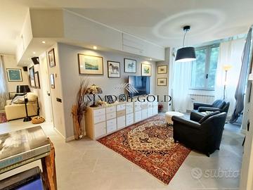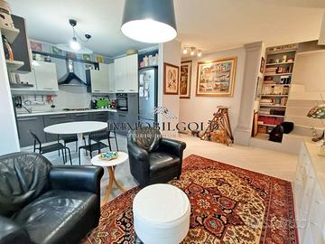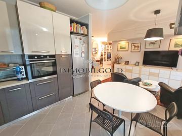 L'ingresso si apre su un ampio soggiorno con cucina a vista, ambiente accogliente e ben distribuito, dotato di aria condizionata canalizzata, con accesso al balconcino. Un comodo disimpegno conduce alla camera matrimoniale e al bagno finestrato con doccia.