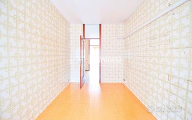 Ingresso con soggiorno ampio e luminoso, cucina abitabile, ripostiglio, disimpegno, una camera da letto matrimoniale, una camera singola e due bagni finestrati.