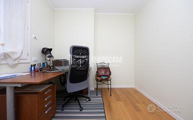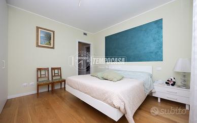Tra le dotazioni dell'immobile: infissi in triplo vetro, tapparelle elettriche, umidostato, contatori nel disimpegno e predisposizione per l'impianto antifurto, raffreddamento a pavimento. Completano la proprietà una cantina piastrellata, un box con doppio attacco elettrico e un ripostiglio privato esterno all'abitazione, organizzato con scaffalature.