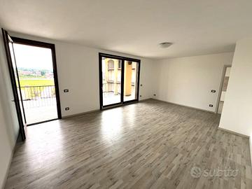 Alloggio di mq coperti 100 (oltre mq 25 di superfici esterne balconate), inserito in contesto plurifamiliare edificato nell'anno 2010, posto a piano primo, composto da soggiorno, cucina, disimpegno, due camere e due bagni.