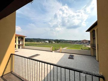Appartamento trilocale con cucina abitabile, doppi servizi, balcone e terrazzo esposto verso sud.