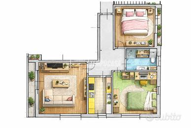 L'ingresso accompagna agli ambienti principali dell'abitazione, a partire dal soggiorno, uno spazio accogliente e ben illuminato, ideale per ospitare l'area living e la zona relax. La cucina è separata e consente una gestione pratica degli spazi, risultando perfetta per chi predilige ambienti distinti e ben organizzati. La zona notte è composta da due camere da letto di buone dimensioni, facilmente arredabili, mentre il bagno è dotato di vasca, garantendo comfort e funzionalità.