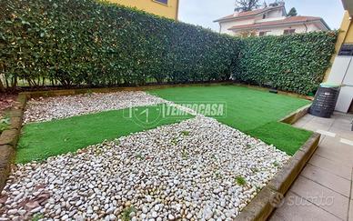 L'immobile, inserito in una minipalazzina del 2006, si distingue per il doppio giardino, sul quale si affacciano tutti gli ambienti della casa offrendo uno spazio verde sfruttabile e riservato.