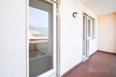 L'abitazione si distingue per una distribuzione interna ben studiata ed è composta da un luminoso soggiorno, una cucina separata, due camere da letto, un bagno e due balconi che offrono piacevoli spazi esterni con vista sulle montagne. All'interno dell'appartamento è inoltre presente un piccolo ripostiglio. Una cantina garantisce ulteriore spazio di deposito, mentre il garage incluso completa in modo funzionale l'offerta.