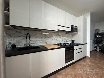 Cod.011 Bastiglia: in contesto residenziale di recente costruzione appartamento al primo piano ascensore. Zona giorno open space, due matrimoniali, due bagni e grande balcone con accesso da tutte le stanze. Doppio garage. Immobile in ottimo stato, dotato di climatizzatore, riscaldamento autonomo, zanzariere e inferriate. Arredato. Classe energetica C. Euro 156.000