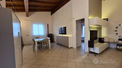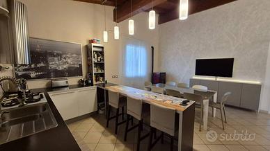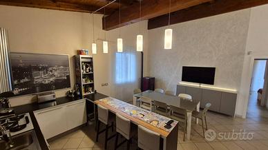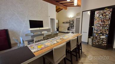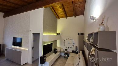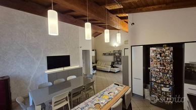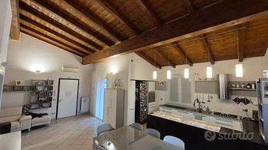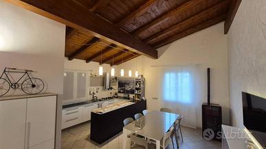 Rif:012BE (122891530) - Rottofreno- Proponiamo in vendita bellissimo appartamento posto al piano primo di una palazzina di solo 4 unità. L'appartamento finemente rifinito e impreziosito dagli alti soffitti con travi in legno lamellare, è composto da: ampio salone con accesso alla terrazza coperta, cucina a vista con penisola a vista, disimpegno, 2 camere da letto matrimoniali con balcone e cabina armadi, un servizio finestrato con doccia. L'immobile è dotato di aria condizionata con pompa di calore, riscaldamento autonomo a gas e dispone inoltre di una idro-stufa a pellet che può riscaldare l'intera casa ed un impianto di allarme con telecamere interne ed esterne gestibili da remoto. La palazzina, è collocata in una zona tranquilla, comoda ai servizi ma lontano dal traffico della strada principale. Completa la proprietà un box doppio in lunghezza con portone sezionale elettrico e una lavanderia nel piano interrato. L'appartamento viene venduto parzialmente arredato, (molti arredi sono realizzati su misura). Bassissime spese condominiali. Per informazioni e appuntamenti contattare l'agenzia CasaSmart al 335.61. 85.891 (MIchele). - Classe: E - IPE: 233.46 kWh/mq anno