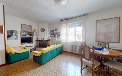 L'ingresso si apre su un accogliente soggiorno che conduce a una cucina abitabile, ben separata e dalle dimensioni comode, ideale per famiglie o per chi ama vivere con praticità la zona giorno. La disposizione interna prosegue con una camera da letto, un locale studio e il bagno.