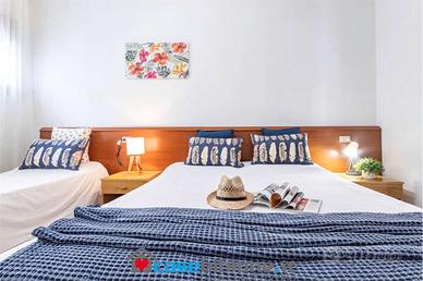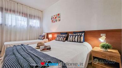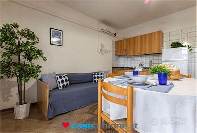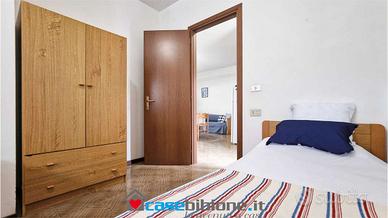 L'appartamento si compone di zona giorno con cucinotto e divano letto doppio, camera con letto matrimoniale, camera con due letti singoli, bagno finestrato con doccia, climatizzatore, giardino di proprietà, posto auto.